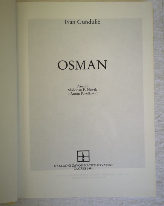Najznacajniji hrvatski barokni pisac i njegovo djelo OSMAN - povijesno - romanticni ep.. Knjiga je NOVA i ako je tiskana 1991..NAKLADNI ZAVOD MATICE HRVATSKE ZAGREB.. STR. 447..TVRDI UVEZ.. FORMAT 18 x 25 cm.. Nazvati : 099 557 00 00..hvala