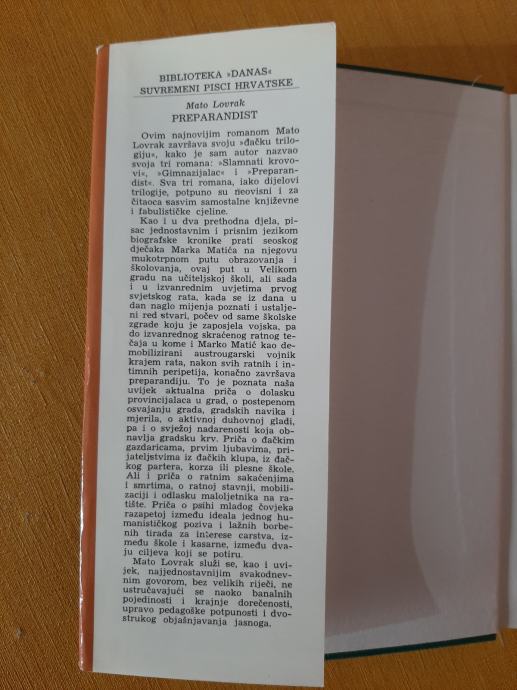 Mato Lovrak - Preparandist - izdavač Zora, Zagreb 1972. godine, 13 x 20 cm, tvrdi uvez i papirnati omot, 273 stranice.