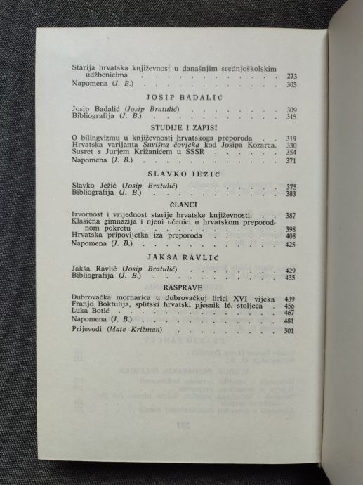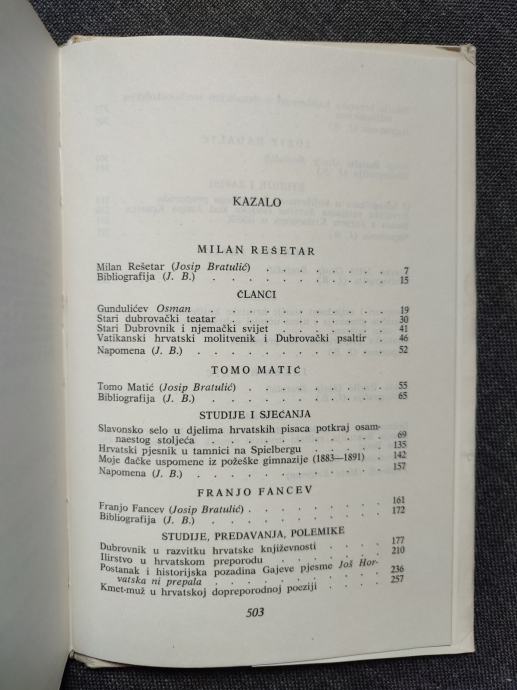 - Članci: Gundulićev Osman, Stari dubrovački teatar, Stari Dubrovnik i njemački svijet, Vatikanski hrvatski molitvenik i Dubrovački psaltir