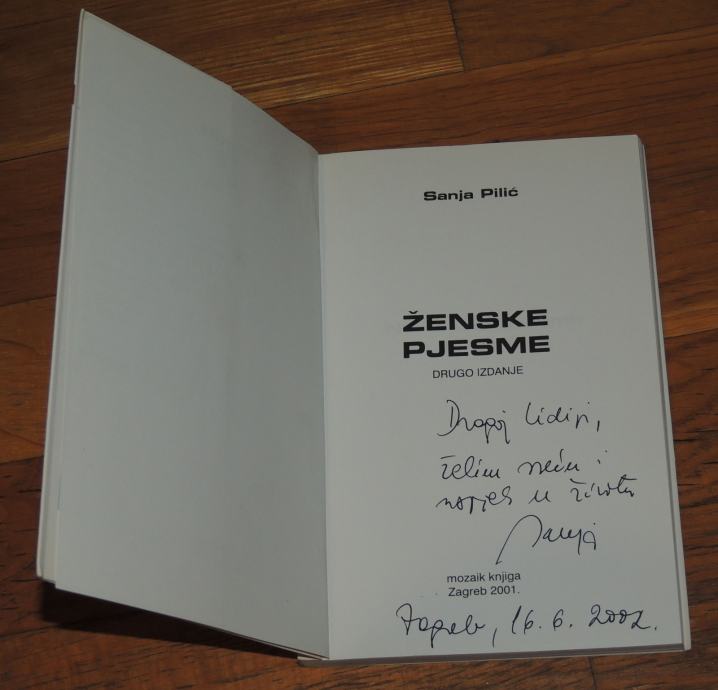 Sanja Pilić Ženske pjesme posveta i potpis autorice