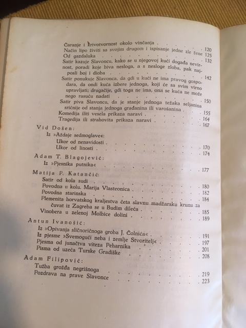 Iz sadržaja: Antun Kanižlić, Josip Milunović, Matija A. Relković, Vid Došen, Adam T. Blagojević, Matija P. Katančić, Antun Ivanošić, Adam Filipović
