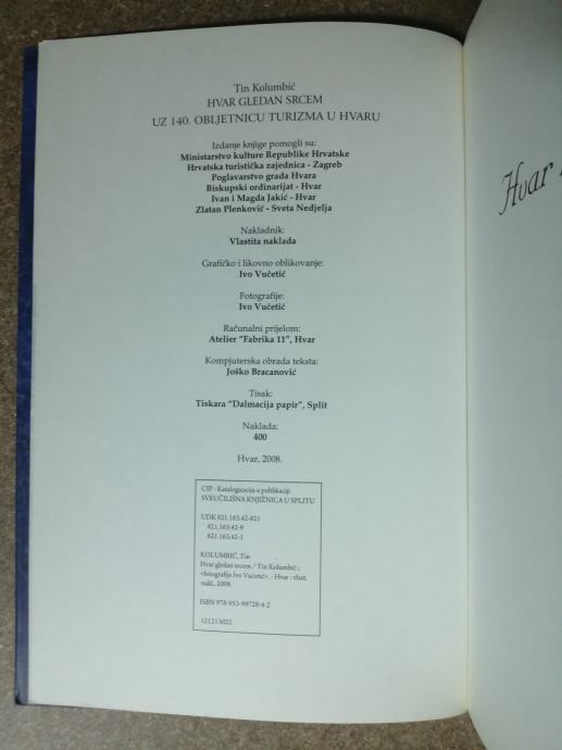 Tin Kolumbić – Hvar gledan srcem (posveta autora)