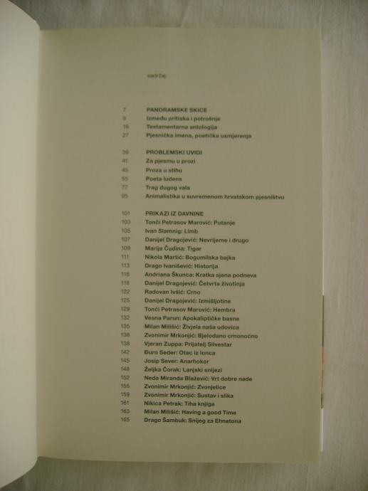 Konglomerat autorovih tekstova tako u sebe zaprima eseje koji tumače širi plan pjesništva, napisane kao pokušaje sistematizacije, problemske tekstove koji se dotiču nekih fenomena, veće portrete nekolicine pjesničkih osobnosti te prikaze i kritike knjiga objavljenih krajem šezdesetih i početkom osamdesetih godina prošloga stoljeća.