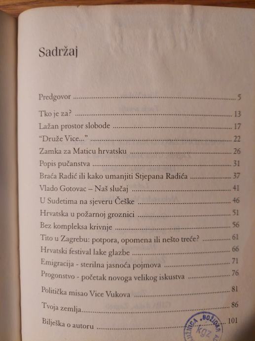 Knjiga je iz otpisa knjižnice - pečati, na stražnjoj korici zalijepljena arhivska naljepnica.