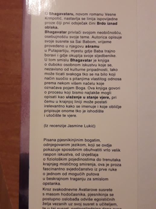 VESNA KRMPOTIĆ:BHAGAVATAR, ROMAN,BIBLIOTEKA POSEBNA IZDANJA