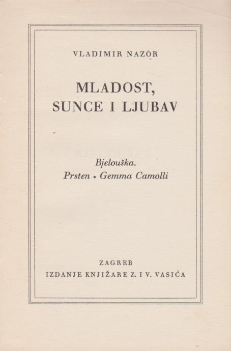 Vladimir Nazor: Mladost, sunce i ljubav, Z. i V. Vasić, Zagreb b. g.