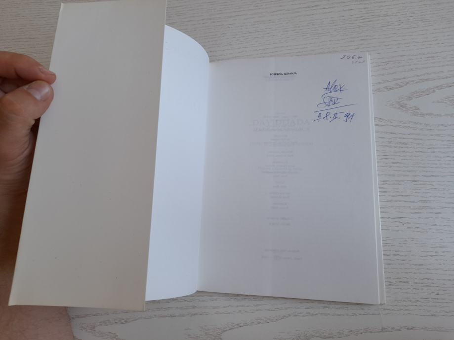 U odličnom stanju, izuzev minimalnih oštećenja na omotu knjige, ima nečiji potpis na prvoj praznoj bijeloj stranici, što je vidljivo na priloženim fotografijama.