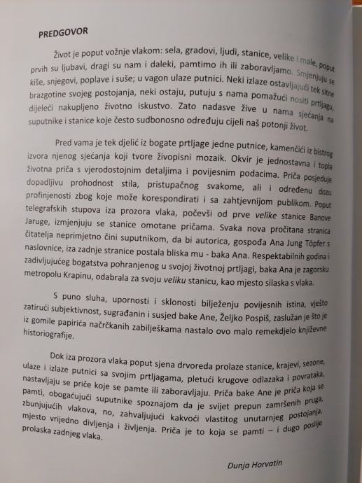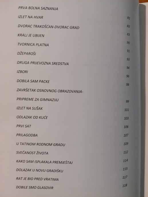 Knjiga sadrži tople priče čiji je okvir jednostavna i topla životna priča s vjerodostojnim detaljima i povijesnim podacima. S puno sluha, upornosti i sklonosti bilježenju povijesnih istina, autoričin sugrađanin okupio ih je i priredio za ovu prigodu.