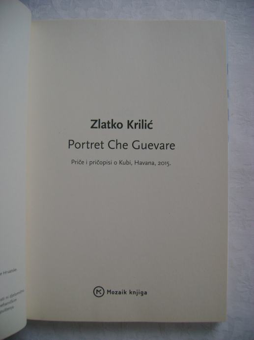 Zlatko Krilić - Portret Che Guevare; Priče i pričopisi o Kubi, Havana, 2015. - izdavač Mozaik knjiga, Zagreb 2019. godine, 14 x 20 cm, meki uvez sa preklopom, 139 stranica.