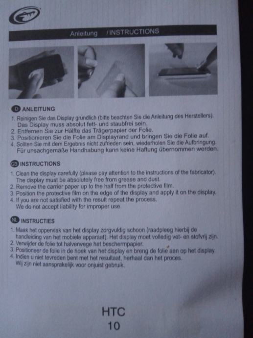 U paketu su dvije folije, krpica za čišćenje ekrana i uputstva za uporaba