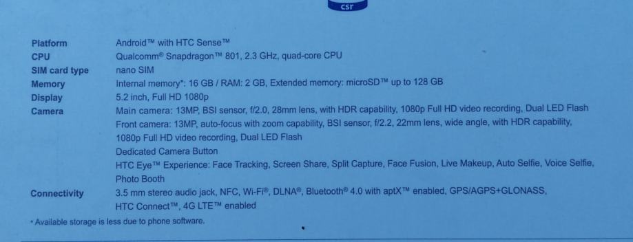 Prodaje se HTC Desire Eye mobilni telefon rabljen ali očuvan i u vrhunskom stanju.