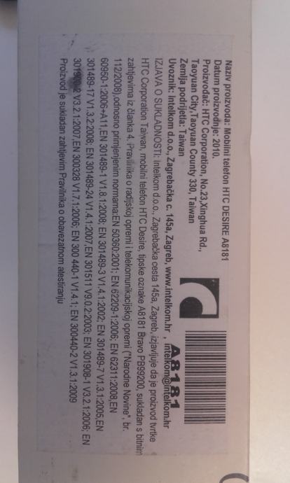 Prodajem mobitel HTC Desire A8181 bez baterije