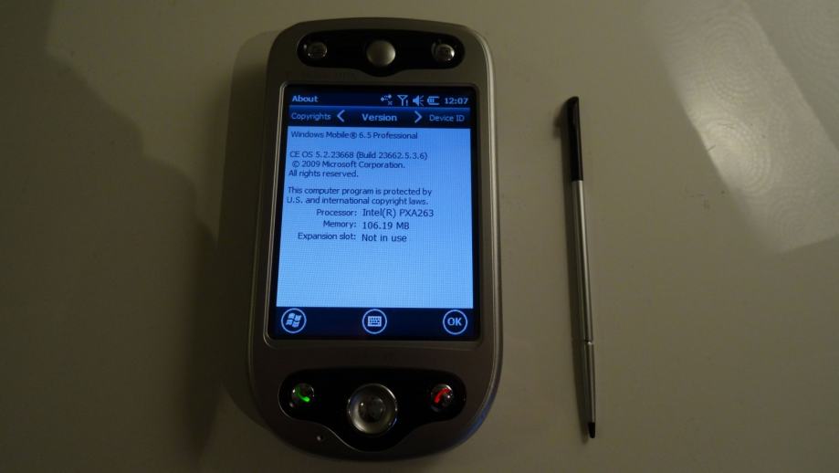 Stari PDA, korišten i još ispravan, flashani su Windows 6.5, otključan je na sve mreže. Dolazi s jednim stylusom i dvije baterije.