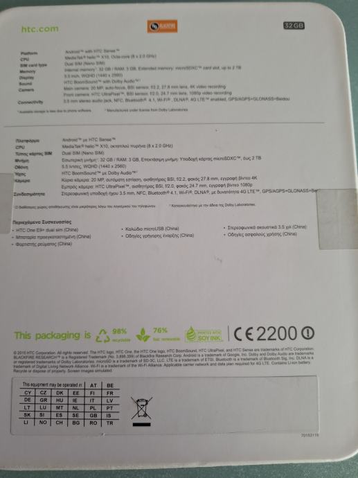 Prodajem mobitel HTC One E9 Plus Dual Sim