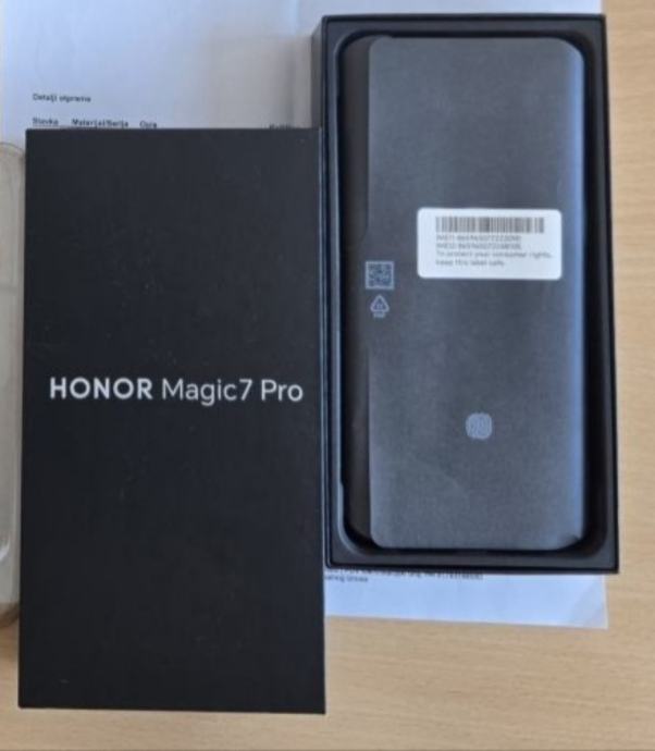 HONOR MAGIC 7 PRO (512GB/12GB) dual-SIM, NEKORIŠTEN, radi na sve mreže, kupljen na produženje ugovora u A1 poslovnici u Splitu.