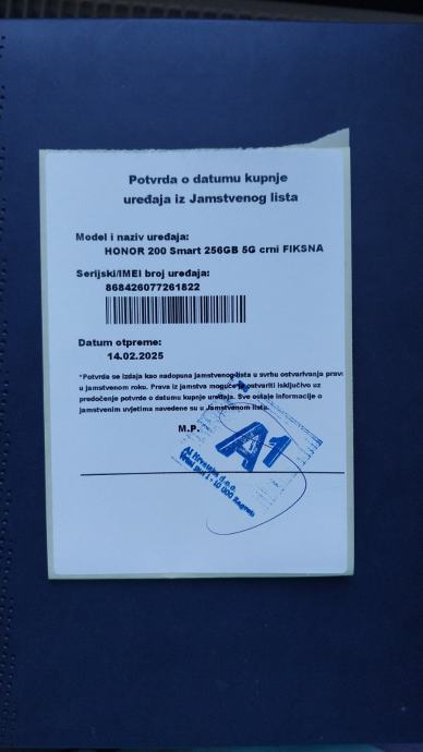 Prodajem zapakiran Honor 200 Smart mobitel, garancija i račun od 14.2.2025. Midnight Black, ALT-NX1, ROM: 256GB, RAM: 4GB