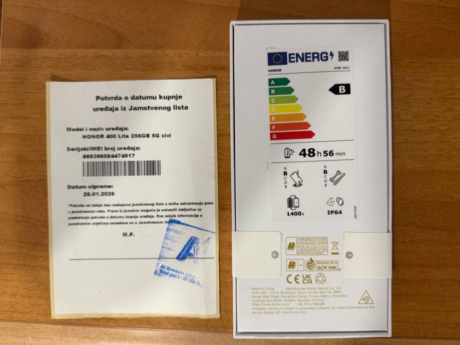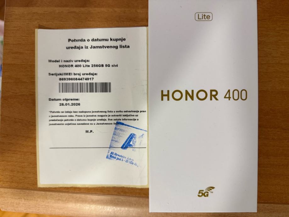 Prodajem novi Honor 400 Lite s 256GB memorije i 5G podrškom u sivoj boji. Telefon je potpuno nov, tvornički zapakiran s potvrdom o datumu kupnje i jamstvenim listom. Dolazi s cjelokupnom originalnom opremom.
