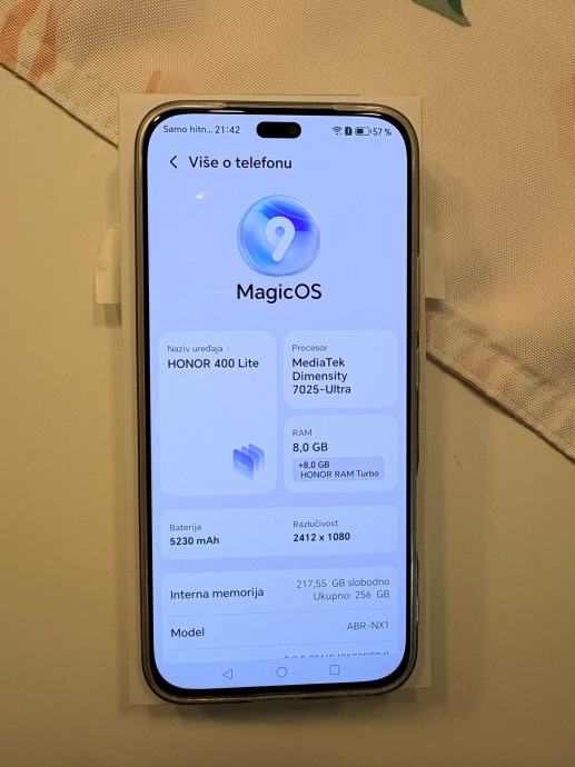 Prodajem Honor 400 Lite 5G mobitel u srebrenoj boji. Uređaj podržava 5G mrežu i opremljen je s 8 GB RAM-a te 256 GB interne memorije. Procesor je MediaTek Dimensity 7025-Ultra, a baterija kapaciteta 5200 mAh osigurava dugo trajanje. Ekran ima rezoluciju 2412 x 1080 piksela.