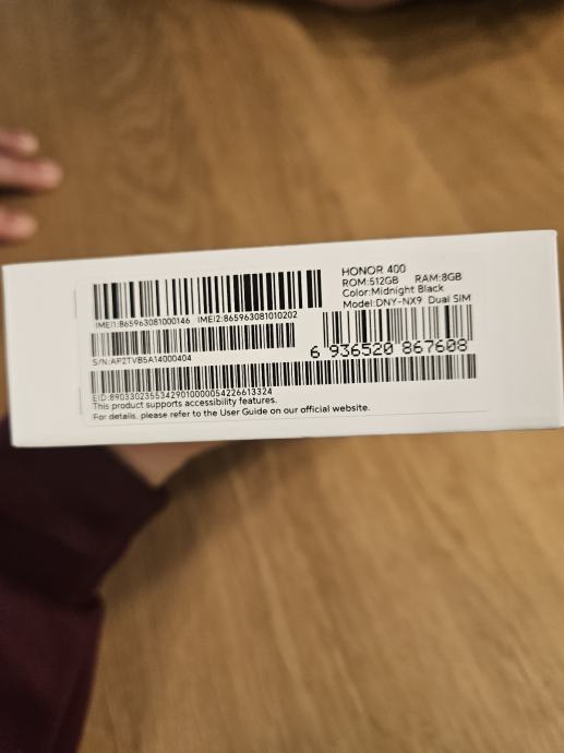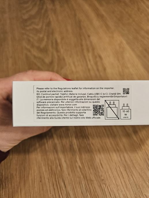 Prodajem nov Honor 400 5G mobitel, zapakiran u originalnom pakiranju. Radi se o modelu s energetskom oznakom razreda A, IP65 zaštitom od prašine i vode te kamerom od 1200x. Trajanje baterije prema specifikacijama iznosi 56 sati i 28 minuta.