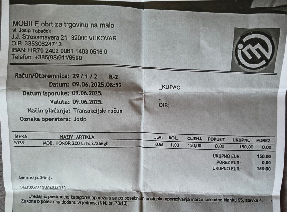 Honor 200 Lite 5G 8/256GB 108mpx 6.7"Amoled kao nov10/10 račun/garanc.