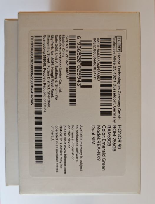 Prodajem rabljeni Honor 90 mobilni telefon u originalnom pakiranju. Uređaj dolazi s kompletnom kutijom i dokumentacijom. Telefon je očuvan i potpuno funkcionalan.