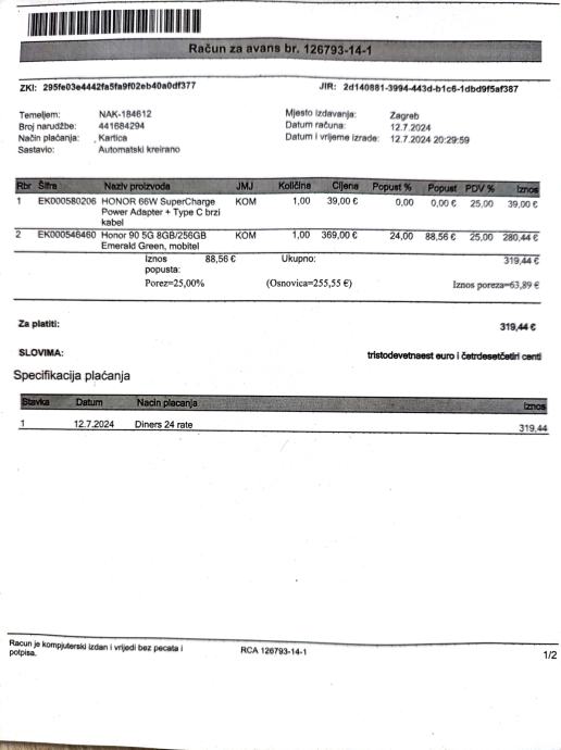 - garancija do 12.7.2027. ....račun