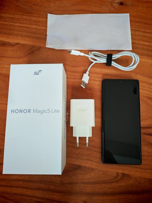 Honor magic 5 lite 5g Midnight Black + punjač, 2 maskice i kaljeno