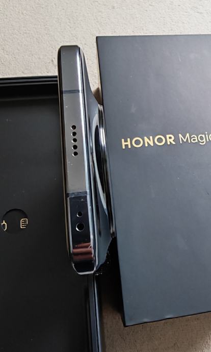 Prodajem rabljeni Honor Magic 5 Pro u crnoj boji. Radi se o vrhunskom flagship uređaju koji dolazi s originalnom kutijom. Kamera sustav je jedan od najistaknutijih detalja ovog mobitela, s tri leće i mogućnošću 100x zuma. Ekran je velikog formata s tankim okvirima i rupom za prednju kameru na vrhu.