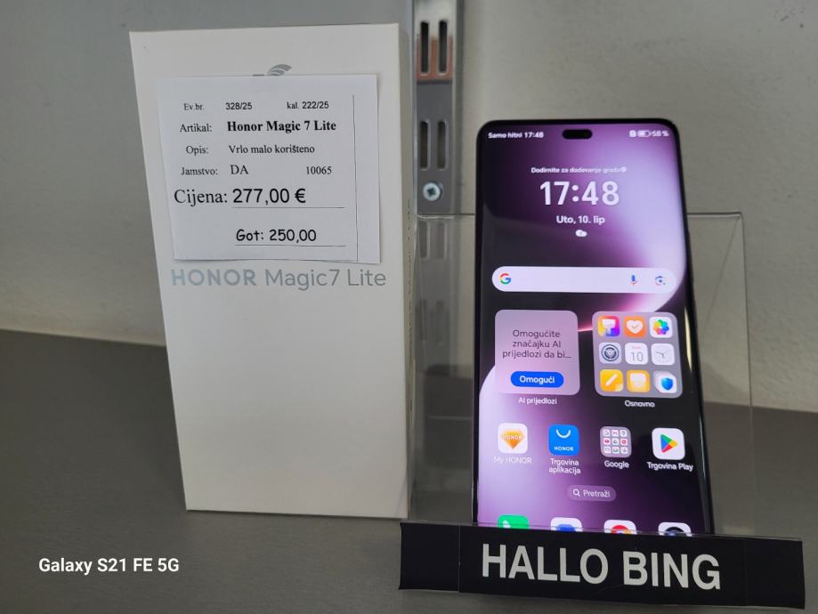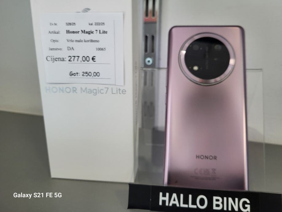 Honor Magic 7 Lite, ljubicasti, kupljen 11.04.2025. Top stanje, racun, jamstvo. Besplatna dostava putem BoxNow.