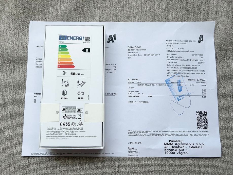 Prodaje se navedeni uređaj tvornički novi zapakiran, kupljen u A1 Centru datuma 13.02.2026.
