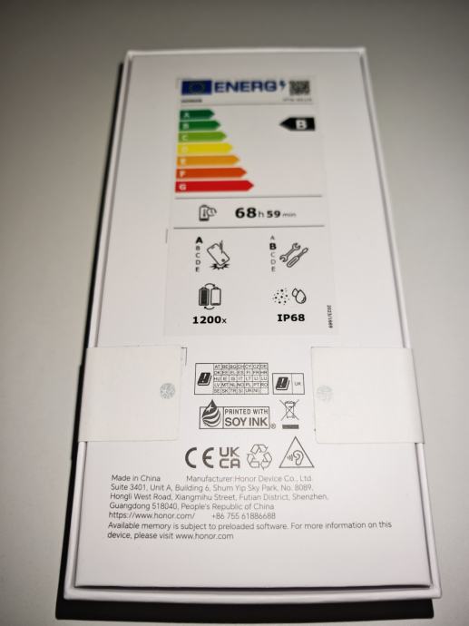 Prodajem nov Honor Magic 8 Lite sa 256GB memorije i 8GB RAM-a. Telefon je u zelenoj boji (Forest Green) i dolazi potpuno neotpakiran. Uređaj podržava 5G mrežu, ima energetsku oznaku B, bateriju od 1200+ ciklusa punjenja te IP68 vodootpornost.
