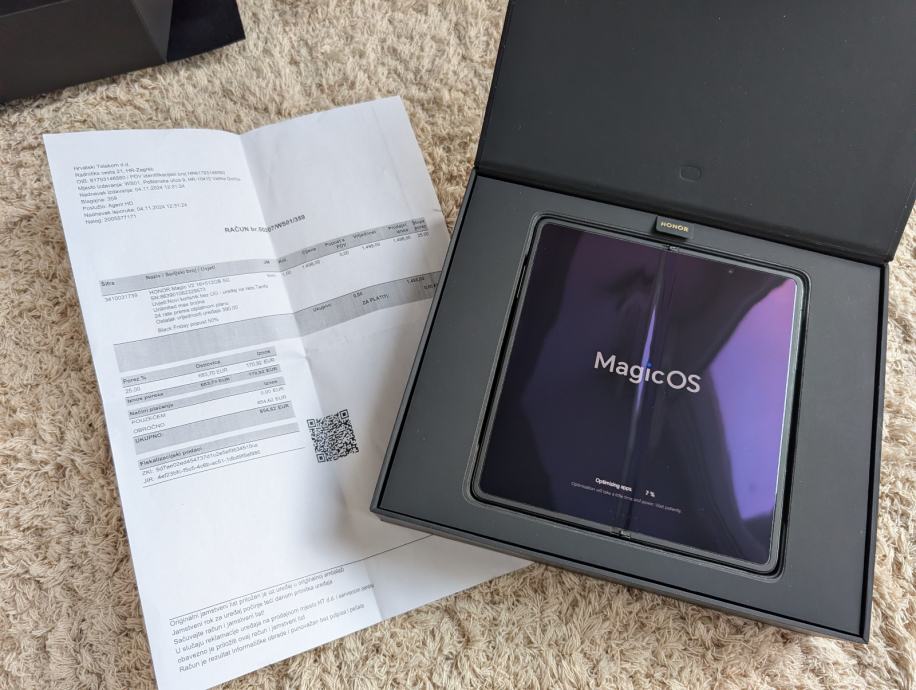 Prodajem ili mijenjam svoj Honor Magic V2, 512 GB, crni, kupljen u prosincu 2024. u Hrvatskom Telekomu, koristio samo ja, uvijek u masci sa folijama na ekranima. Baterija 100 %. Cijena 500 €, fiksno. Osijek,osobno.