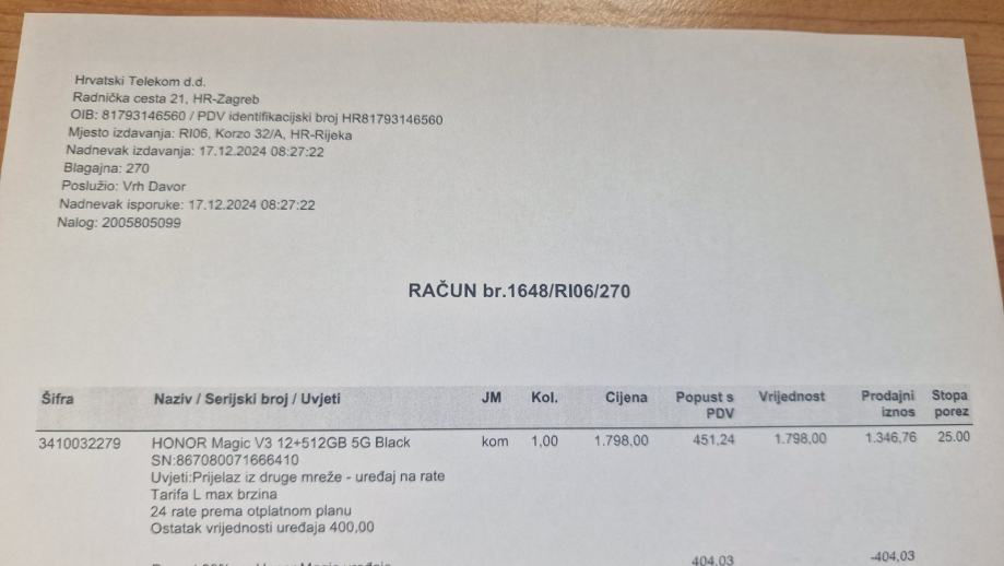 Prodajem Honor Magic V3, bez tragova korištenja 10/10, potpuno ispravan, kupljen u HT-u, jamstvo do 17.12.2026. godine. Mobitel je korišten za pozive, poruke, internet velikom većinom samo sa vanjskim ekranom. Bez zamjena.
