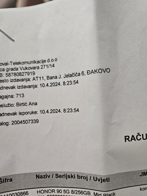 Prodajem HONOR 90 5G, 8 GB RAM / 256 GB, Midnight Black.