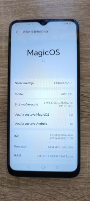 Prodajem mobitel Honor X6a,mobitel ima tragova korištenja sve vidljivo na slikama,u potpunosti je ispravan radi bez ikakve greške,nema maskicu ni foliju na ekranu,ali ekran nije oštečen,stakla kamera su malo izrisana ali ne smeta radu kamera,uz njega dajem kabel za punjenje jer punjač ni ja nisam dobio s njim. Baterija drži do 2-3 dana ili duže,ovisno koliko se koristi.Otključan je na sve mreže,dual sim je i također podržava micro sd karticu. Na T-Mobile i A1 radi provjereno.