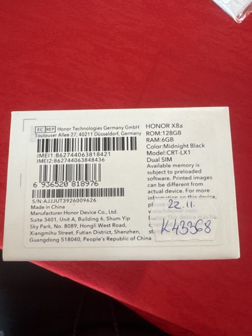 Prodajem potpuno novi Honor X8a za cijenu od 150 eura. Svi potrebni podaci prikazani su na slici.
