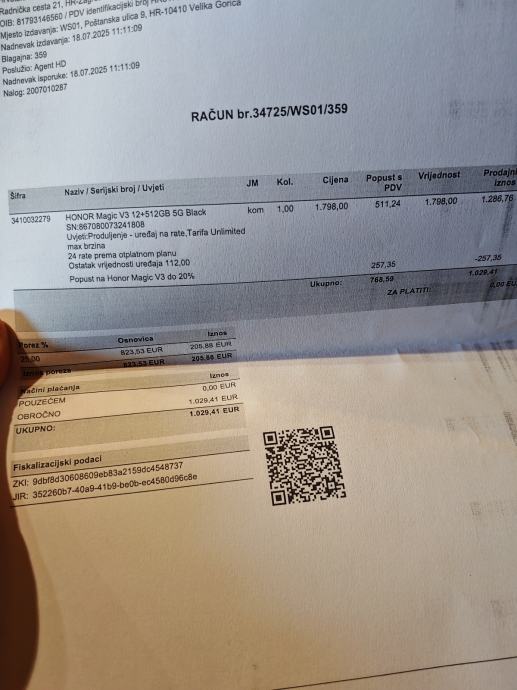 Prodajem povoljno ,jer se ne želim cijenjkati ,honor magic v3 kupljen 18.7 25