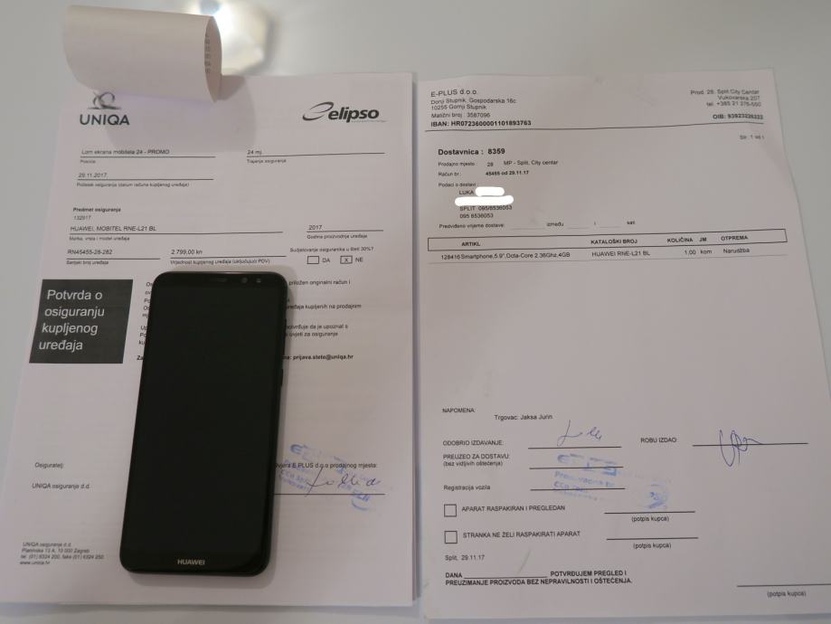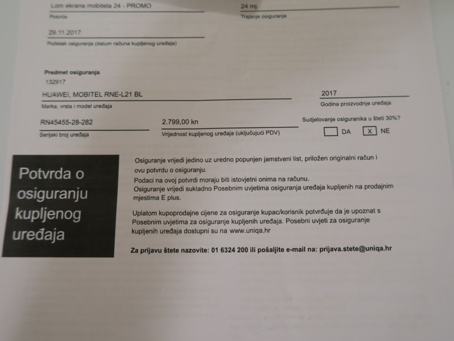 Poklanjam uz mobitel Uniqa osiguranje od loma ekrana koje traje do 29.11.2019. godine.