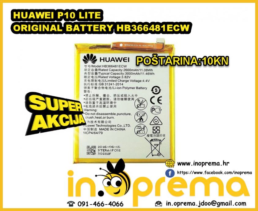 HUAWEI P10 LITE ORIGINAL BATERIJA ORGINAL POSTARINA 10 KN 091/466-4066