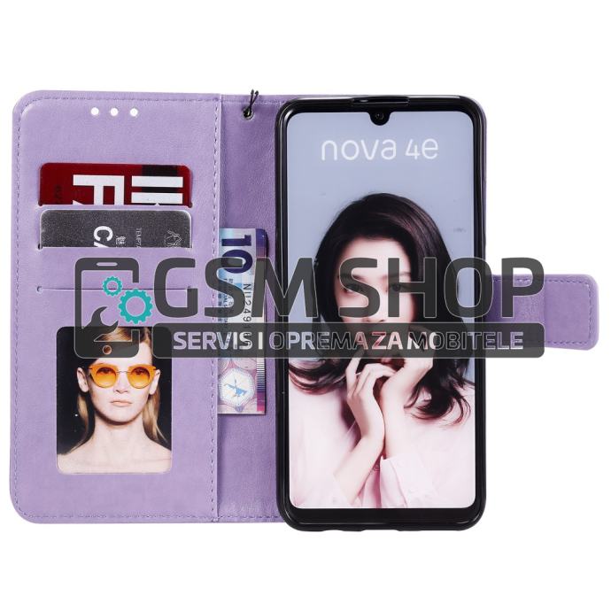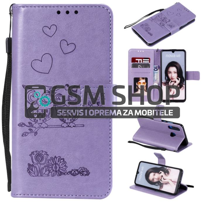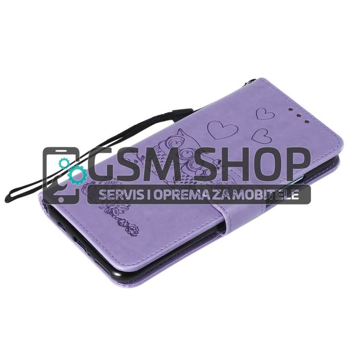 Kožna torbica futrola Huawei P30 Lite novčanik dvije sove ljubičasta