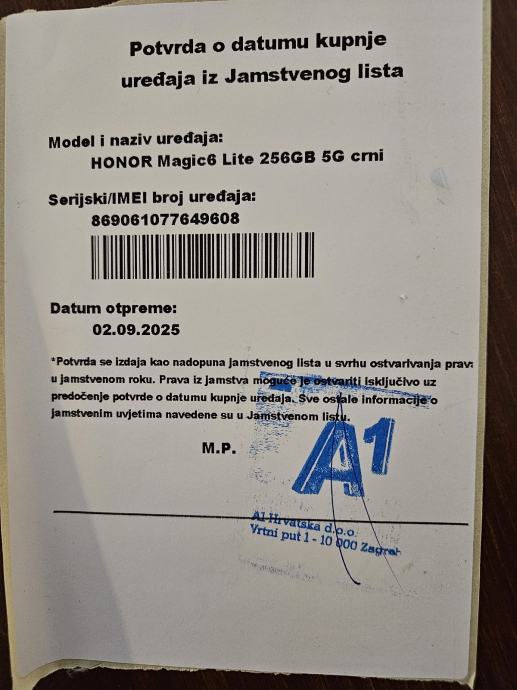 Prodaje se Honor Magic6 Lite 8/256, crne boje. Novo i nekorišteno, uzeto uz produljenje ugovorne obveze kod A1.
