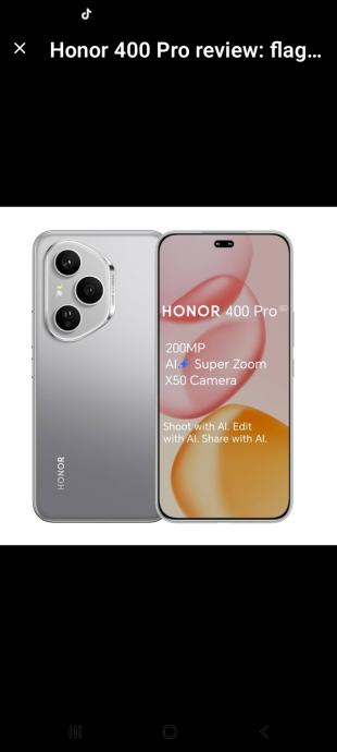 Prodajem potpuno novi HONOR 400 Pro mobitel u elegantnoj sivoj boji. Uređaj ima impresivnu kameru s trostrukim objektivom i vrhunske performanse. korišten za probu i , dolazi u originalnom pakiranju sa svim pripadajućim dodacima. + maskica i punjac Razlog prodaje jer nije bilo samsunga pri produljenju a sve ostalo mi je samsung a ja nema zivce sve to uparivati ponovo tako da se vraćam na samsun a ovu zvijer prodajem