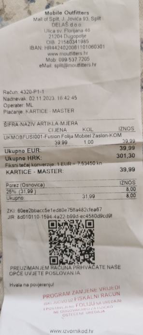 Račun i jamstvo uz mobitel.