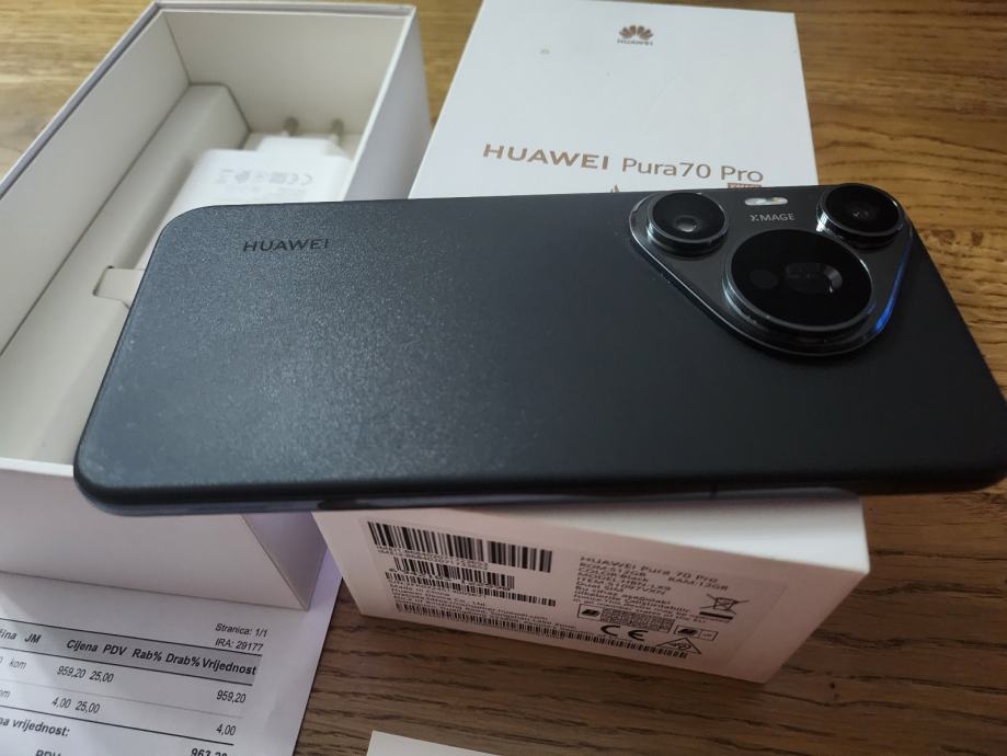 Huawei Pura 70 Pro crne boje star 3 mjeseca. Bez tragova korištenja, model sa 512GB i 12GB RAM.