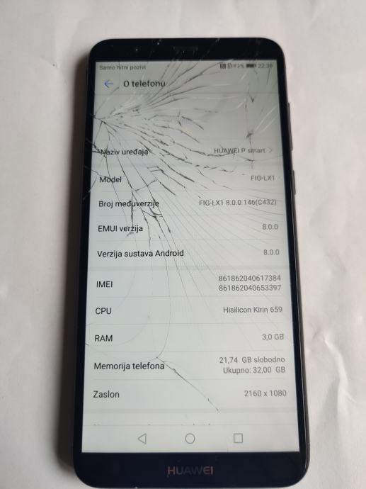 Huawei P Smart dual sim ,3gb ram,ispravan , oštećen, bez punjača
