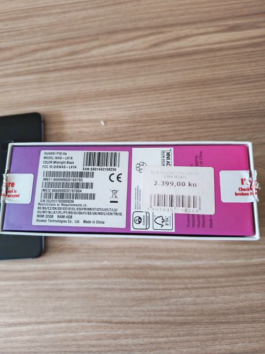 Prodajem potpuno ispravan i očuvan mobitel HUAWEI P10 lite sa originalnom kutijom. Mobitel je od prvog dana u silikonskoj zaštitnoj maskici i potpuno je očuvan i ispravan.,plačen 2, 399,00 kn.