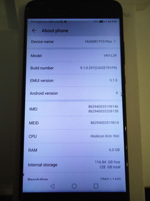 Huawei P10 Plus, model VKY-L29. 6GB RAM, 128GB pohrana.