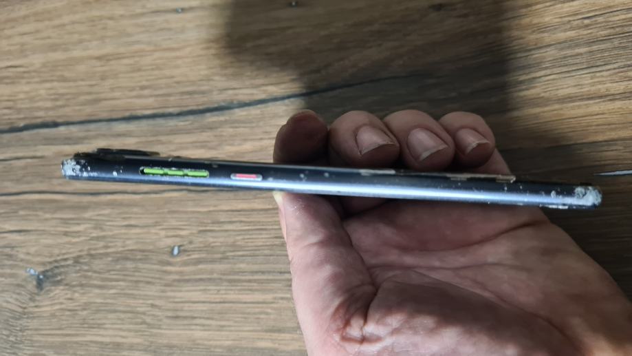 Uređaj je oštečen napred i straga te ima oštečenja po rubovima,fali tipka glasnoče ali može se pojačavati i stišavati.