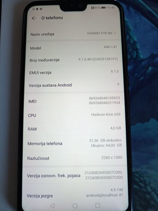 Prodajem mobitel Huawei P20 lite u izvrsnom stanju, osrednje stanje baterije, s kutijom, punjačem i kablom.