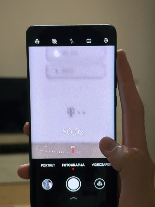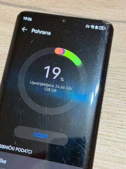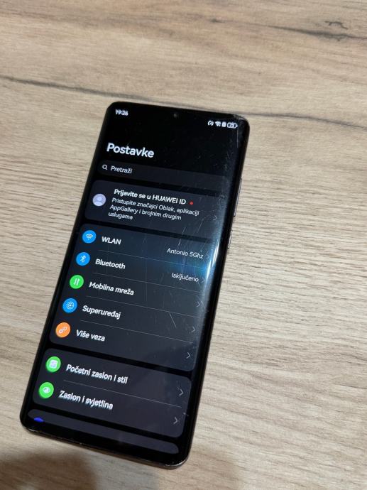 Na mobitelu je razbijeno prednje staklo gore u kutu, i ekran je vise izgreban